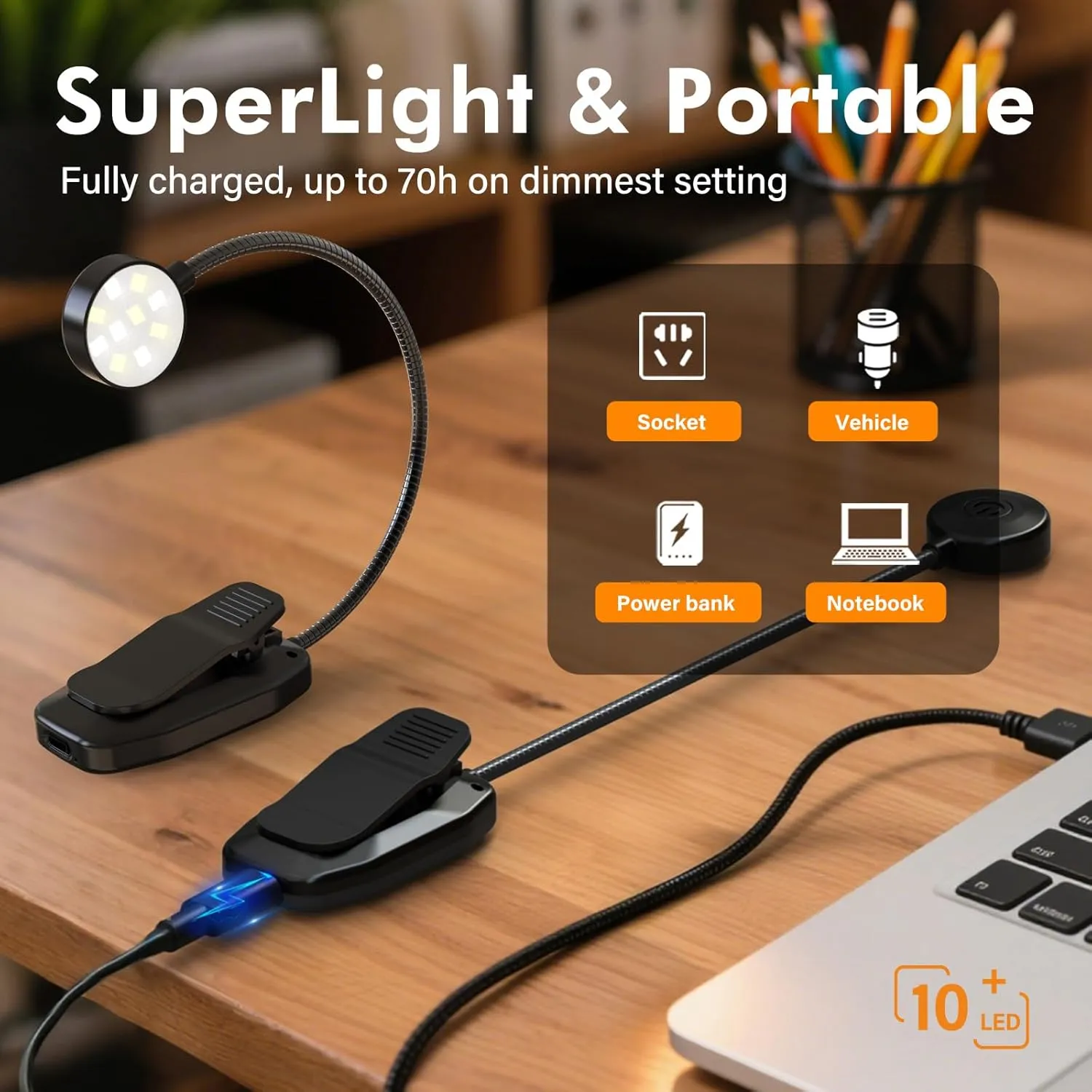 Protect Your Eyes While Reading: KTEBO book light features 10 LED light beads that provide soft, healthy light that won’t strain your eyes. With 3 levels of brightness adjustment, you can enjoy your novel without disturbing anyone around you