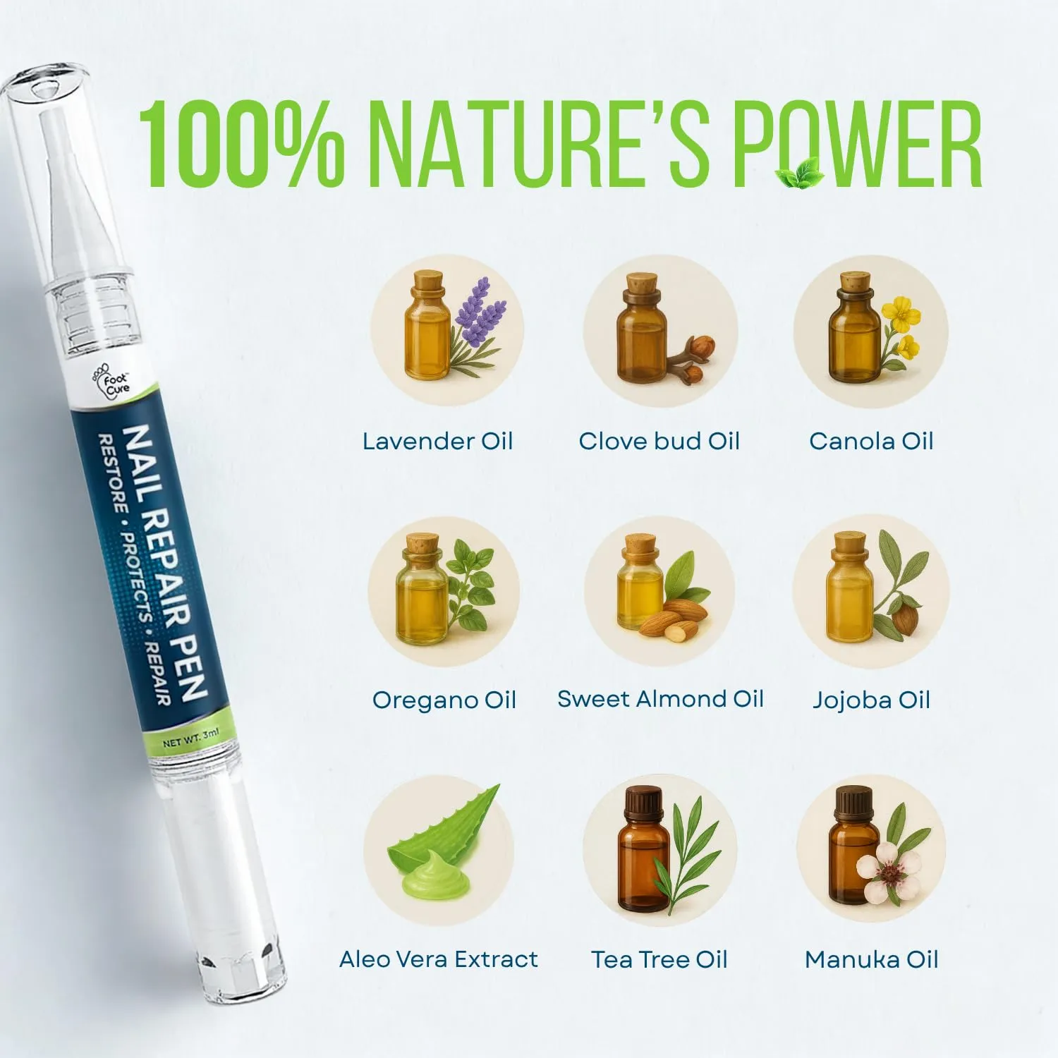 Natural & Effective Solution: FOOT CURE’s Nail Repair Pen formula harnesses the power of tea tree oil and oregano oil to nourish and support healthy-looking nails. If you’re looking to improve the appearance of your nails, we provide an easy, natural way to care for them from the comfort of your home.