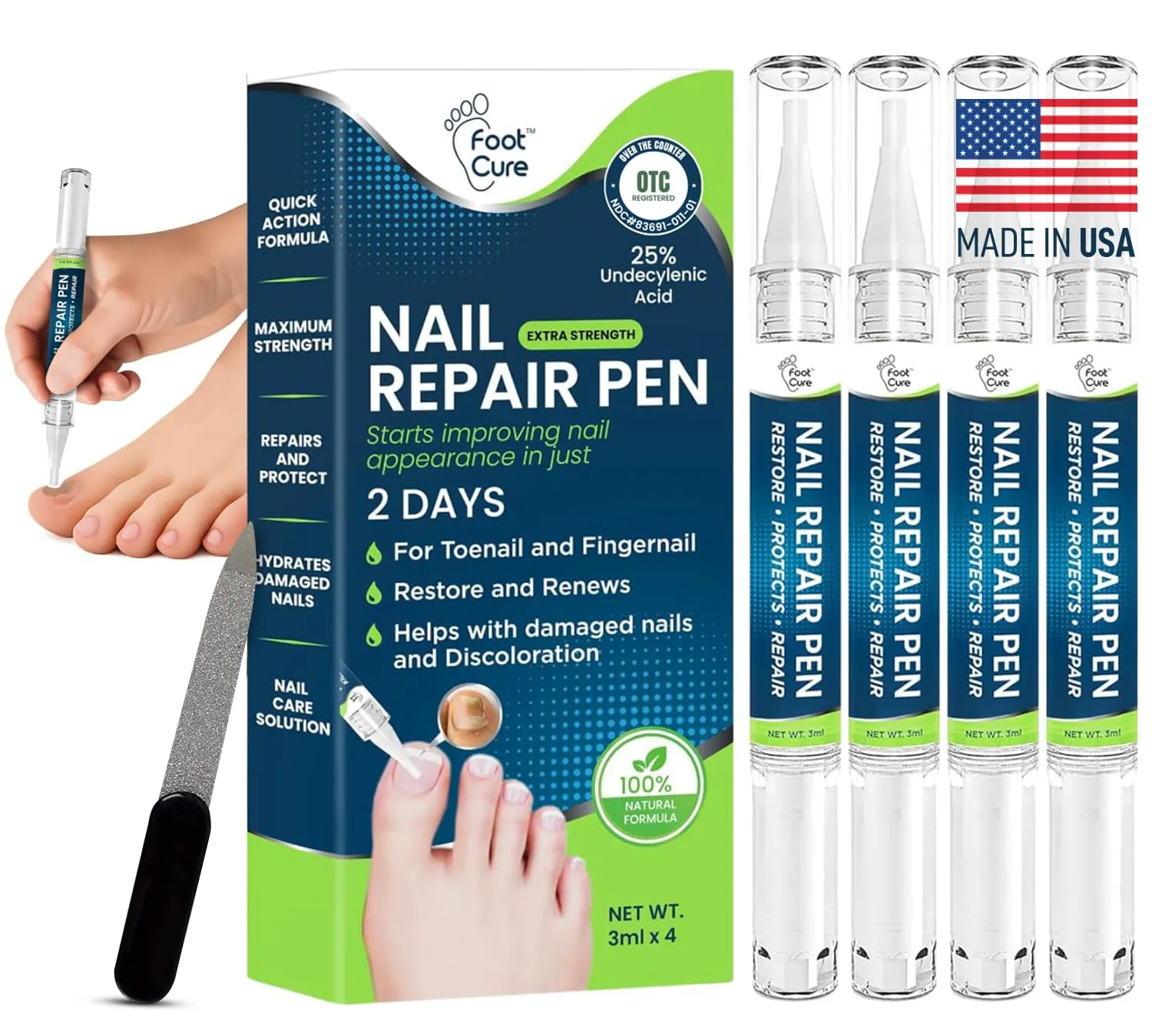 Directions for Use: Apply FOOT CURE’s Nail Repair Pen to toenails twice daily for 15-30 days, depending on the thickness of the affected areas. For best results, use consistently as part of your nail care routine.
