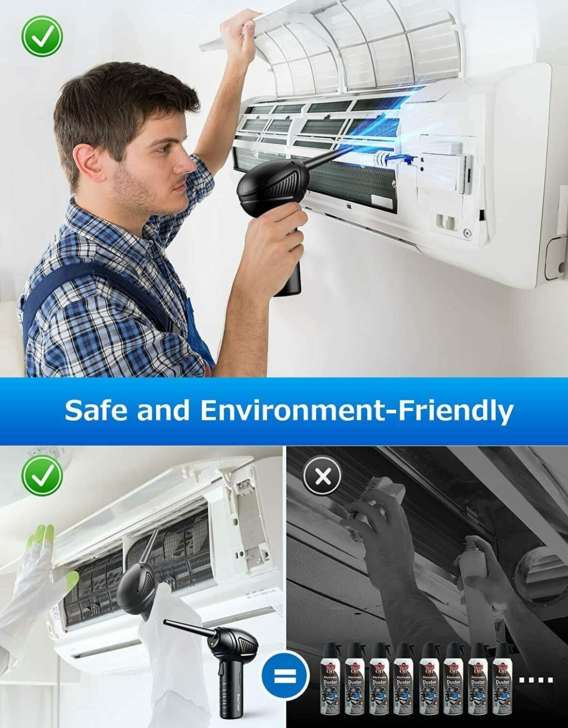 Thin and long nozzle makes it easier to clean corners or place where hand cannot reach. The nozzle is removable for better space utilization. Perfect for Keyboards, computer case, car seats, or even your le go toys.